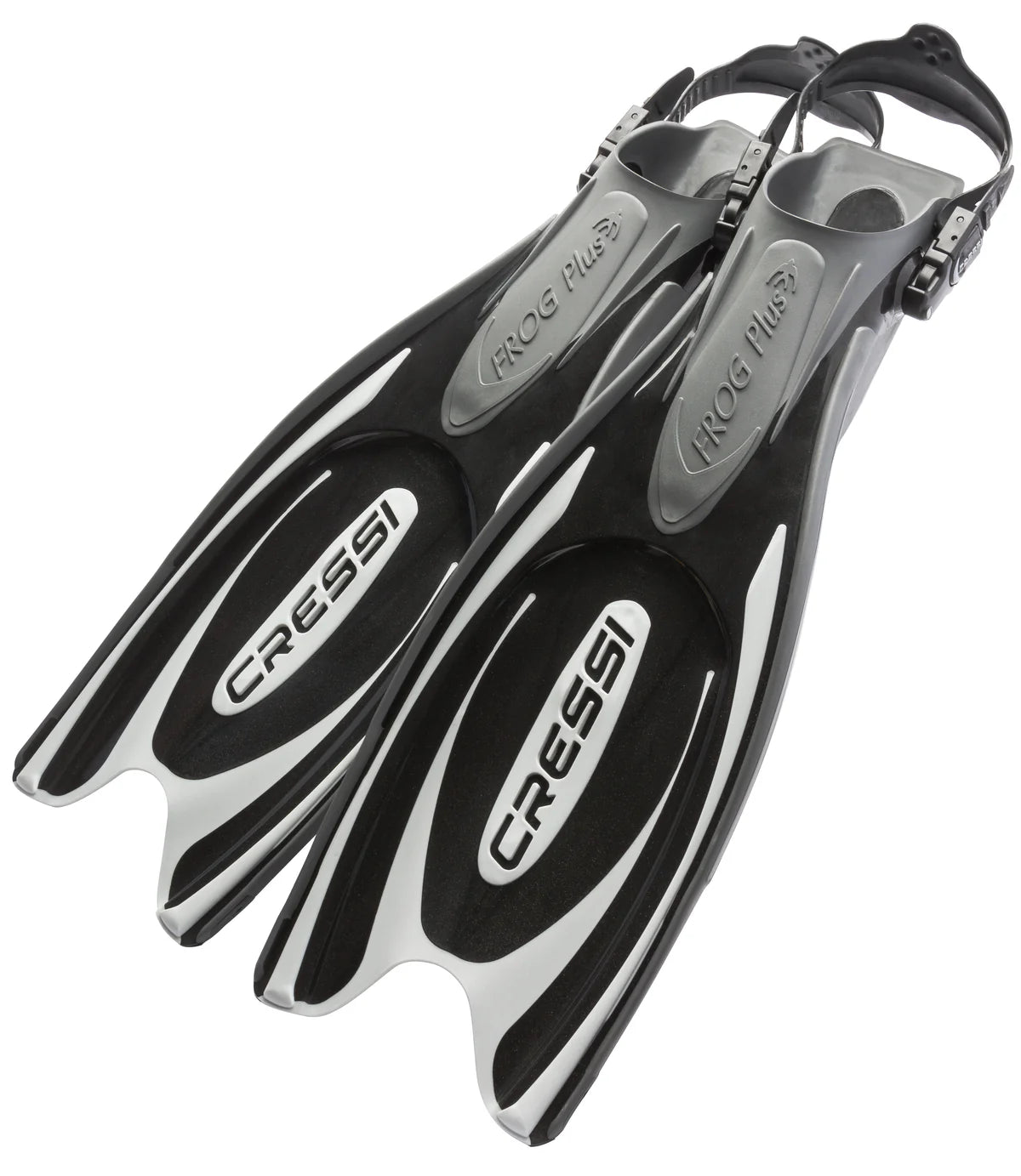 Die Frog Plus wird mit einem patentierten Spritzgussverfahren, aus drei Materialien, gefertigt. Diese bestehen aus einem angenehmen, komfortablen Gummi auf dem Fußteil, das bis zu den Seitenrippen des Flossenblatts verläuft. Das zweite Material ist das revolutionäre, neue "Dual-Density-Technopolymer", das das Blatt bildet und in Verbindung mit dem dritten Material auf Silikonbasis eine Kanalisierungswirkung erzeugt. Die Materialkombination gilt als weitestgehend unzerstörbar, Sie ist dennoch äußerst komfortabel in der Benutzung. Das Fußteil hat die bei Cressi übliche, perfekte Passform und ist mit Standardbändern, mit Schnellverschluss-Schnallen ausgerüstet. EBS-Bungeebänder sind auch für die Frog Plus optional erhältlich.